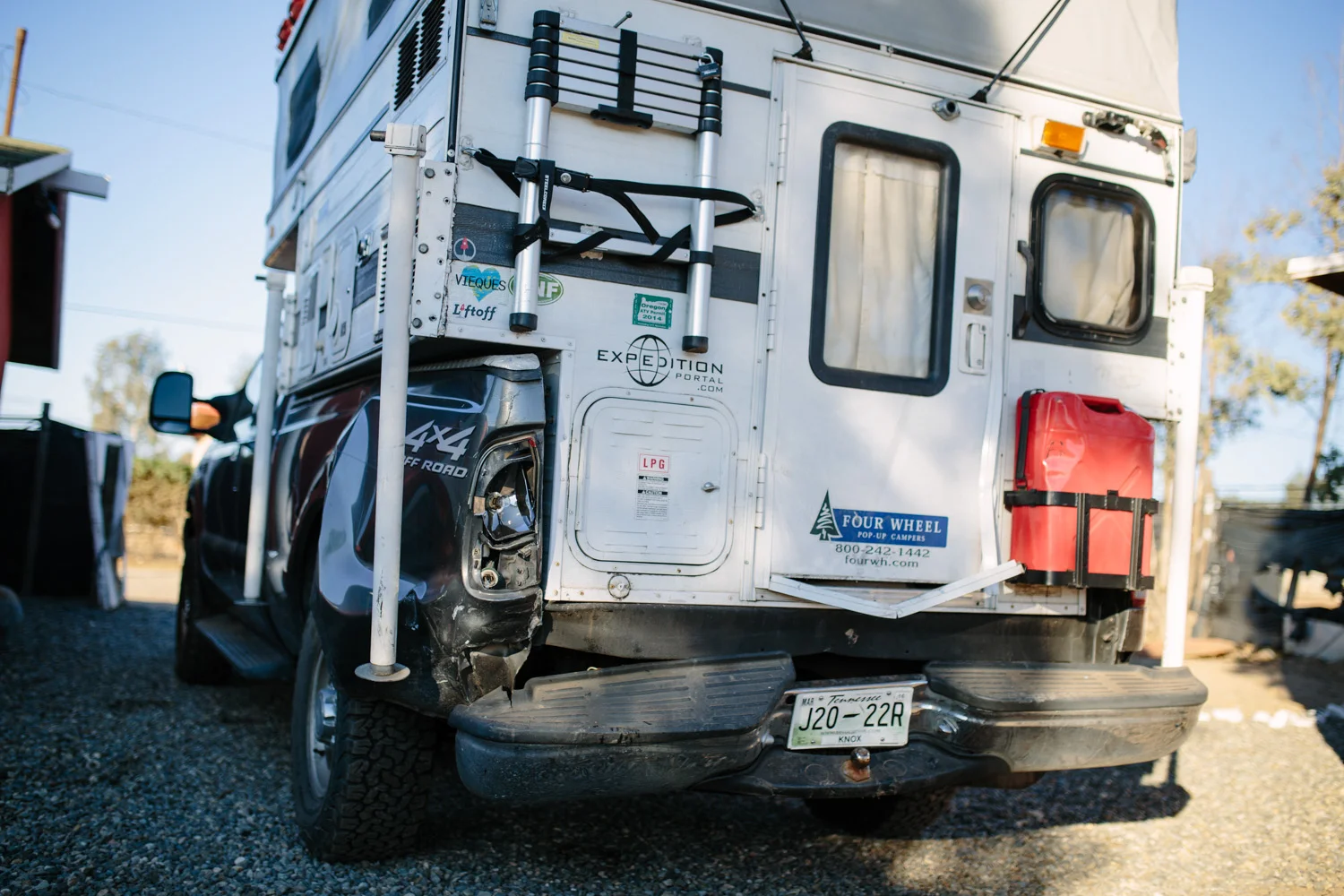 Local police, ambulances, and fire trucks all show up very quickly considering how remote the area is. They have to use the jaws of life to get the woman out of the van. The front of the van is flattened. As a testament to Four Wheel Camper and Ford trucks, there's amazingly little damage to our rig. The firemen are all very concerned with the fluid leaking out of the back of our camper. I reassure at least four of them that it's just agua.